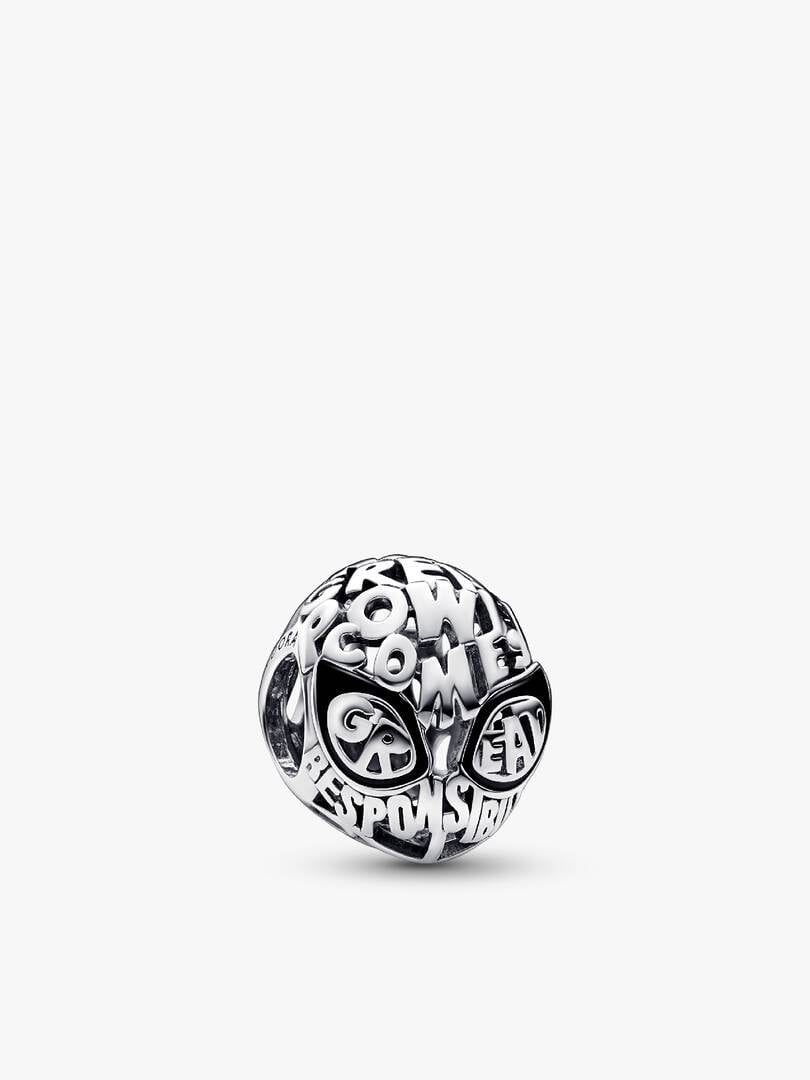 Spin your own Spider-Man story with our Marvel Spider-Man Mask Charm. Crafted from sterling silver in the shape of Spider-Man’s mask, the charm’s front is made up of graphic font that spells out the iconic reminder “With