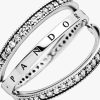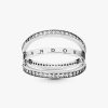 Create multiple looks with just one reversible ring in sterling silver, detailed with our logo and signature hearts. The hand-finished band ring features two lines of clear cubic zirconia that flip from side to side, so