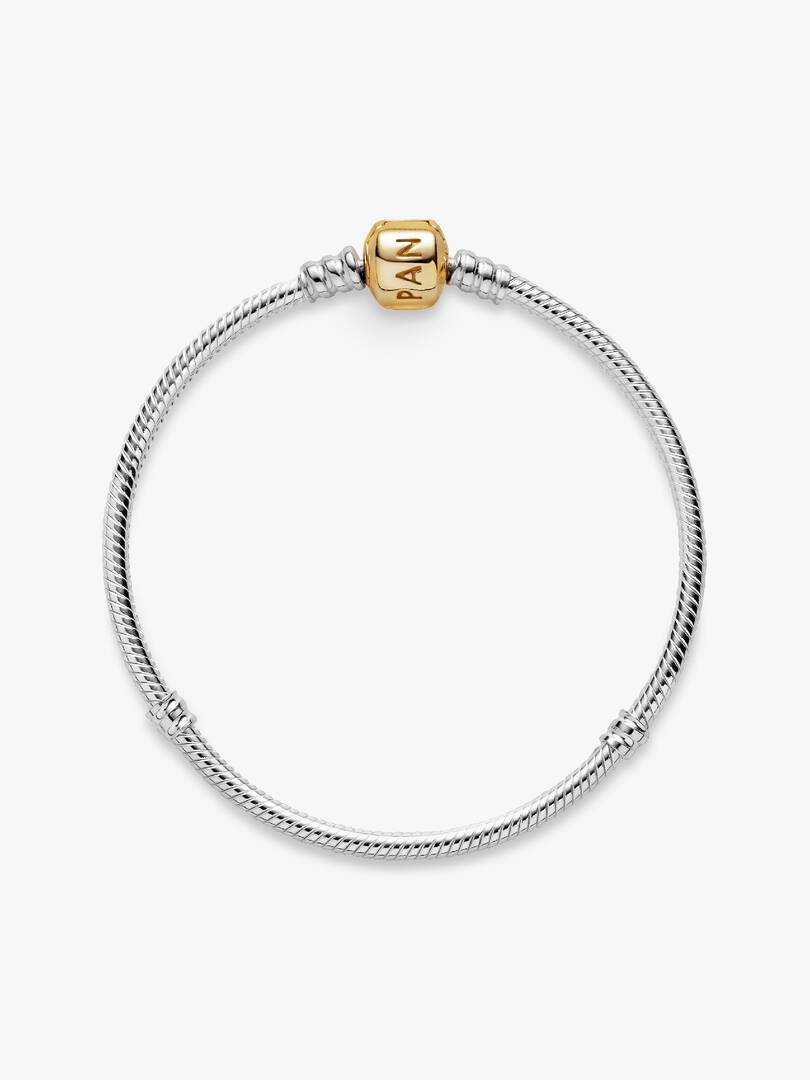 One of our signature styles, used by women around the world as a base for unique combinations of meaningful charms, this two-tone snake chain charm bracelet is made from sterling silver and solid 14k gold. Detailed with