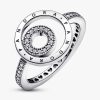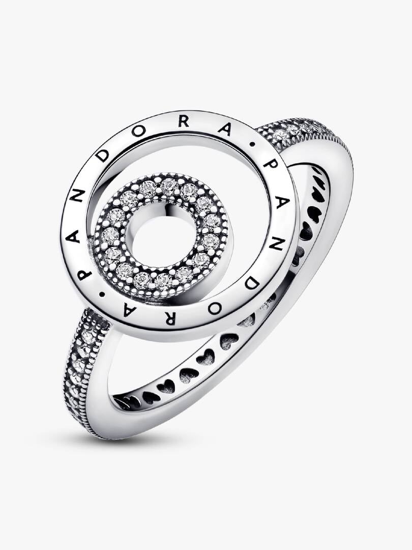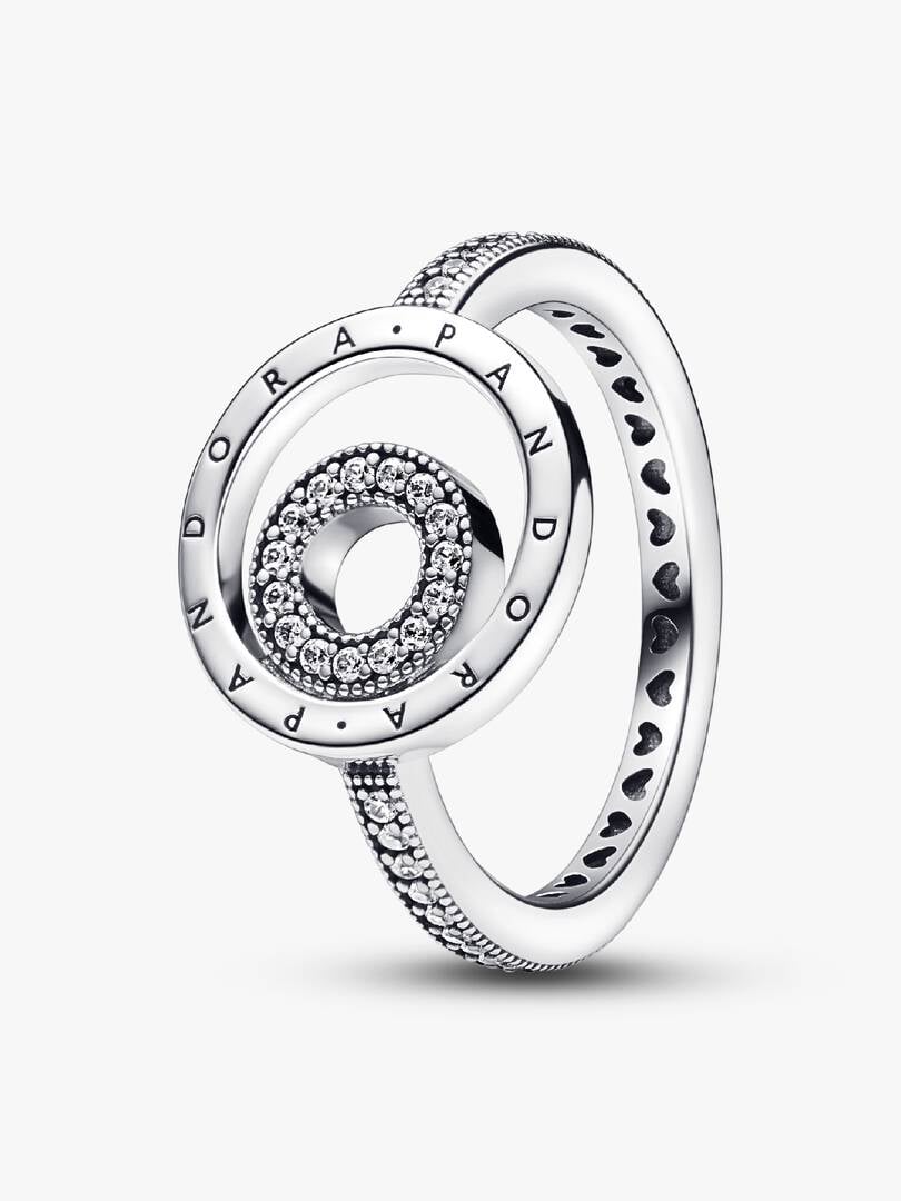 Crafted in sterling silver, the brand Signature Logo Circles Pavé Ring combines iconic design elements to create a sophisticated jewelry box staple. The off-centered placement of the inner circle adds a dynamic quality