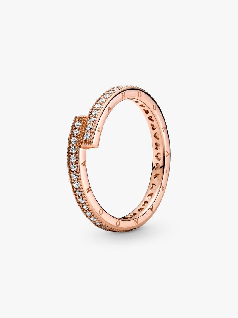 Opt for modern minimalism with the Sparkling Overlapping Ring. This hand-finished, 14k rose gold-plated ring features an asymmetrical design where the square ends of the band slightly overlap to create 90-degree angles.