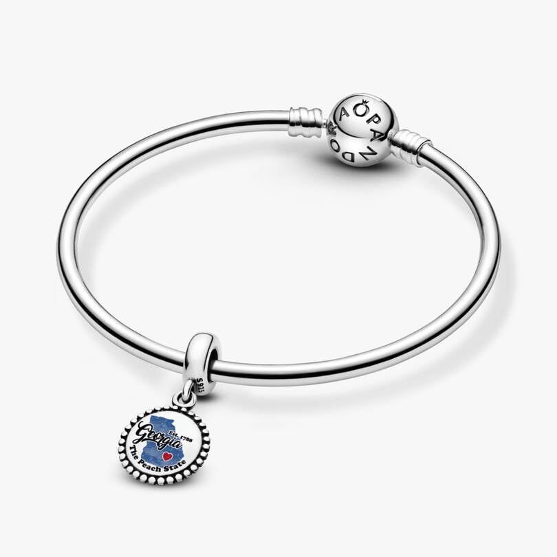 If Georgia is a place near and dear to your heart, this sterling silver dangle charm is perfect for showing off that Southern charm—as a gift to yourself or someone special. The design features a state-shaped silhouette