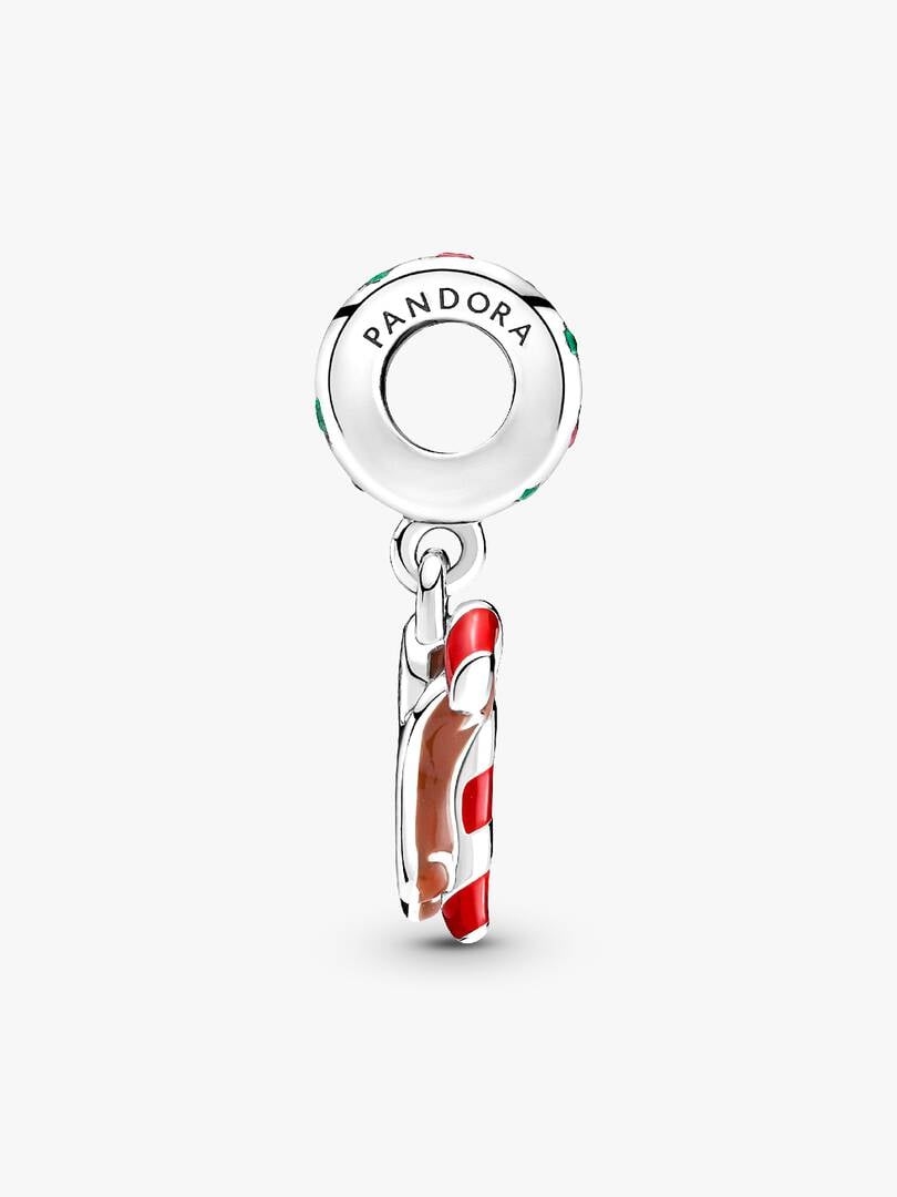 This mischievous Gingerbread Man Dangle Charm will steal your heart. Hand-finished in sterling silver and decorated with colorful red, pink and green enamel, this dangle charm features a gingerbread man holding a red and
