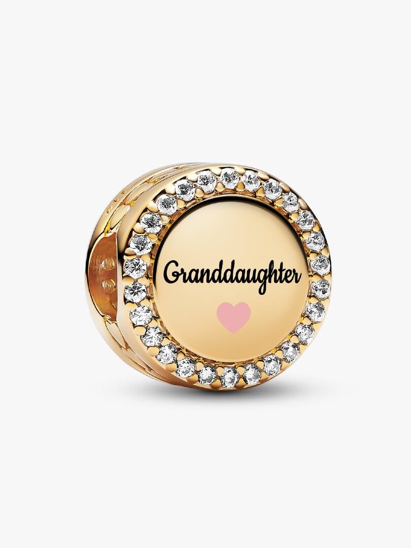 Honor your cherished granddaughter with this elegant 14k gold-plated Engravable Granddaughter Charm. Adorned with sparkling pavé cubic zirconia, it’s engraved with “Granddaughter” and a delicate pink heart for a touch of