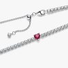 Keep your heart in the right place – at the center of your look. This sparkling necklace features a cherry red man-made crystal, which hangs in the middle of a sterling silver chain. Finished with a sliding clasp, the ne