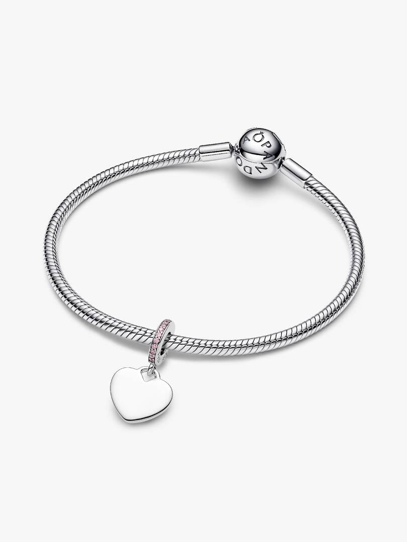 Show what’s in your heart. This sterling silver, heart-shaped dangle charm and features pink cubic zirconia for a touch of sparkle. Personalise yours to make it your own.