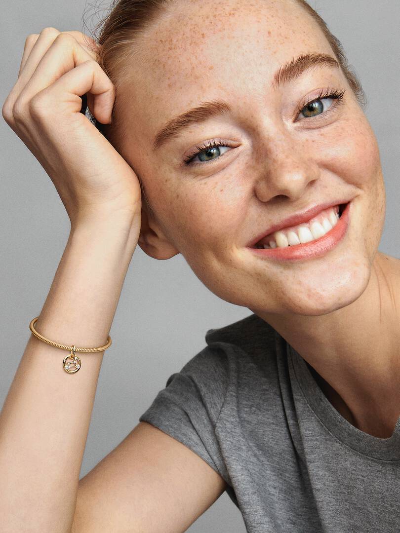 Let the stars guide your look with the Leo Zodiac Dangle Charm. This brand Moments dangle charm is crafted our 14k gold-plated unique metal blend, has a circular outer frame and features clear sparkling cubic zirconia