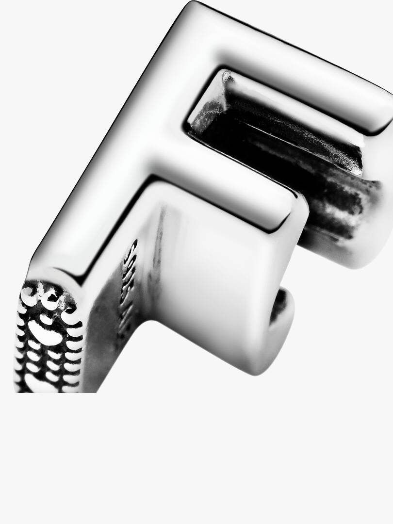 r F. The reversible sterling silver charm is polished on the front and feature raised hearts and beads on the back. Add the letter F to your charm collection or gift it to someone that’s got a special connection to the letter.