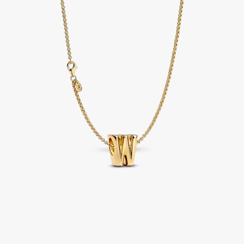 What does W represent to you? Make a statement with a Letter W Alphabet charm necklace. This 14k gold-plated set includes the Rolo Chain Necklace and Letter W Alphabet Charm, perfect for personalization.