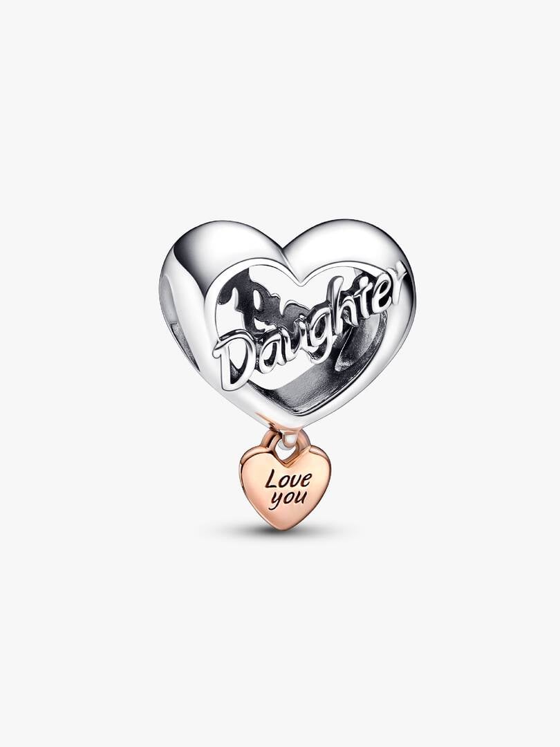 Show your appreciation for the dearest people in your life with the Love You Daughter Heart Charm. Crafted from sterling silver, this heart-shaped design features the word “Daughter” in openwork script on both sides. A s