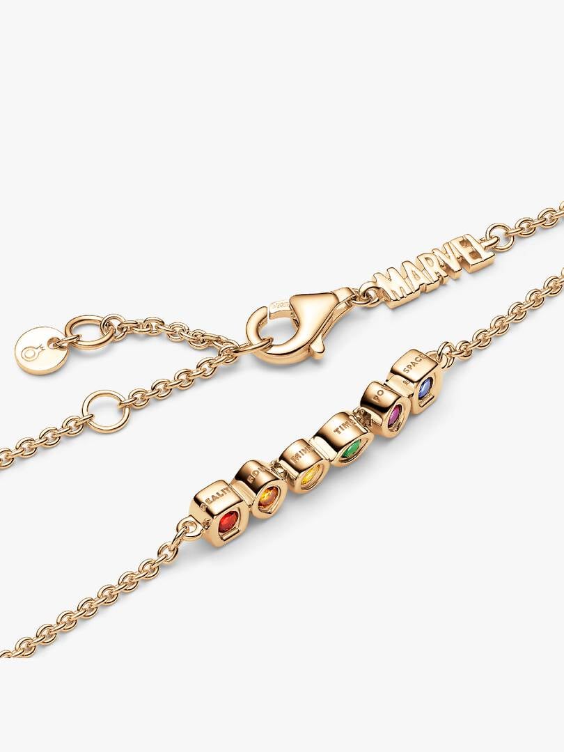 s. Symbolizing the six Infinity Stones from The Avengers, the crystals are bezel-set in different shapes, with each featuring a unique color and message: red (“REALITY”), orange (“SOUL”), yellow (“MIND”), green (“TIME”), purple (“POWER”) and blue (“SPACE”). This Marvel x brand bracelet is a must-have for Marvel fans.