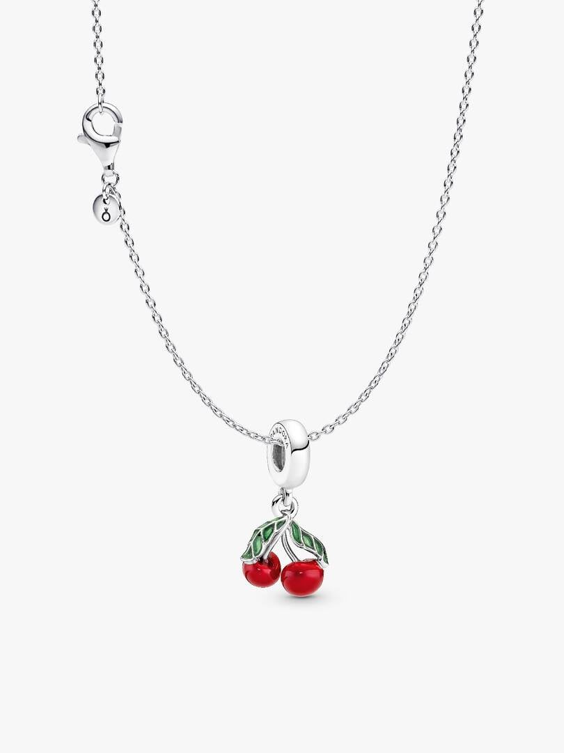 Sweet with an edge—just like Megan. This cherry charm set combines a pair of ripe red cherries with detailed green leaves hand-finished in a translucent, rich red enamel and a sterling silver necklace duo that brings a p