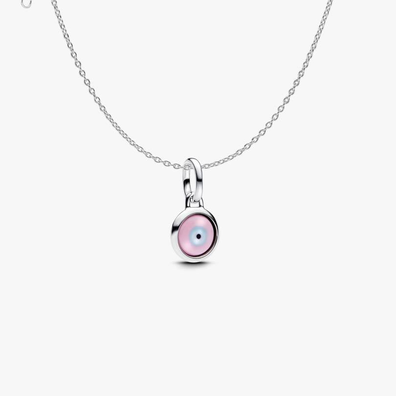 The Mini Evil Eye Charm Necklace Set is a symbol of protection and personal style. Featuring an adjustable sterling silver chain and a vibrant Murano glass evil eye charm with an engravable back.