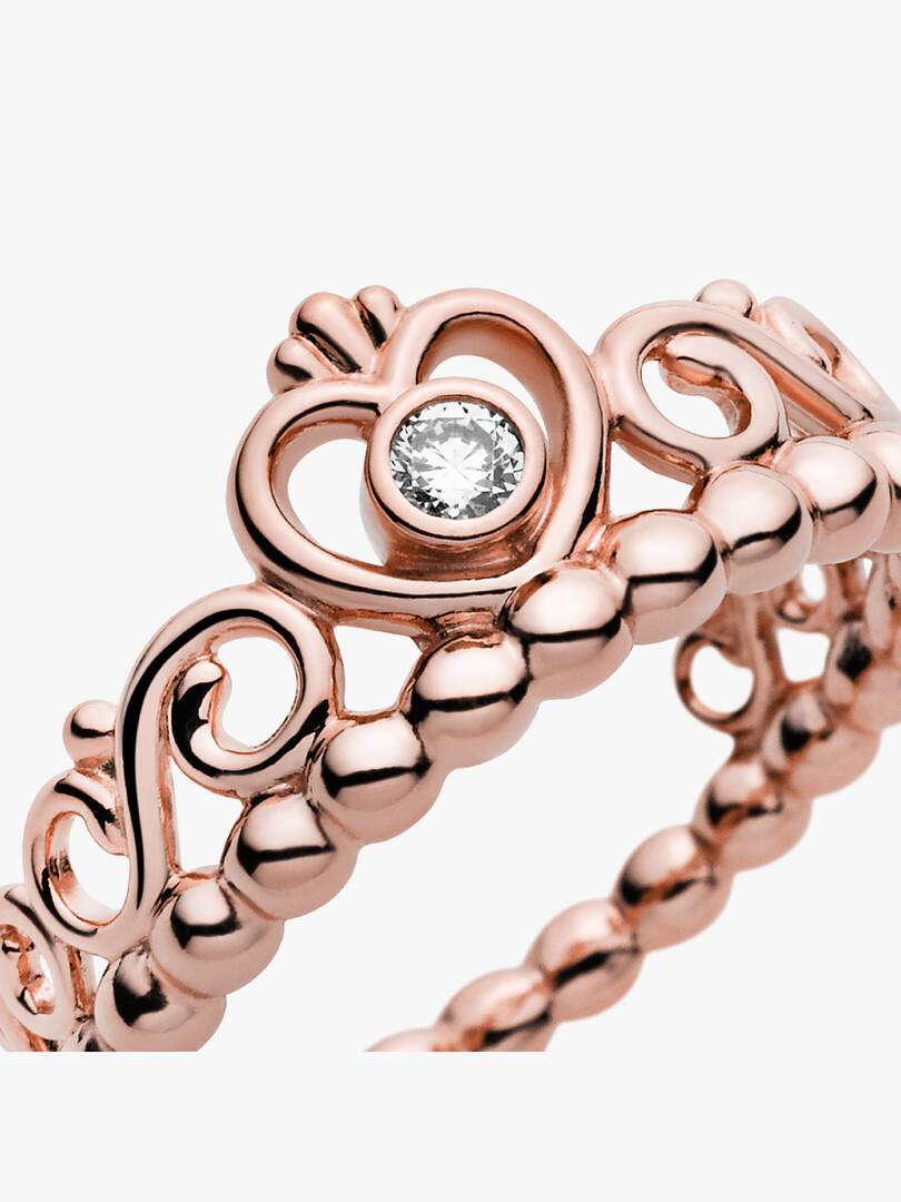 Feel like a princess every day with this magnificent Princess Tiara Crown Ring. Exquisitely plated with 14k rose gold, this enchanting style features a heart-shaped tiara design accented with a single shimmering cubic zi