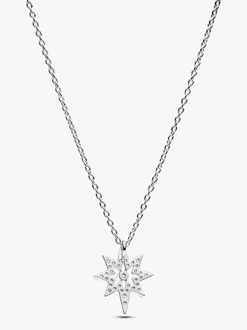 Light up your look with our North Star Pendant Necklace in sterling silver. Featuring the symbolic design of the Polaris shining with clear cubic zirconia from a classic cable chain, this necklace adds a celestial glow t