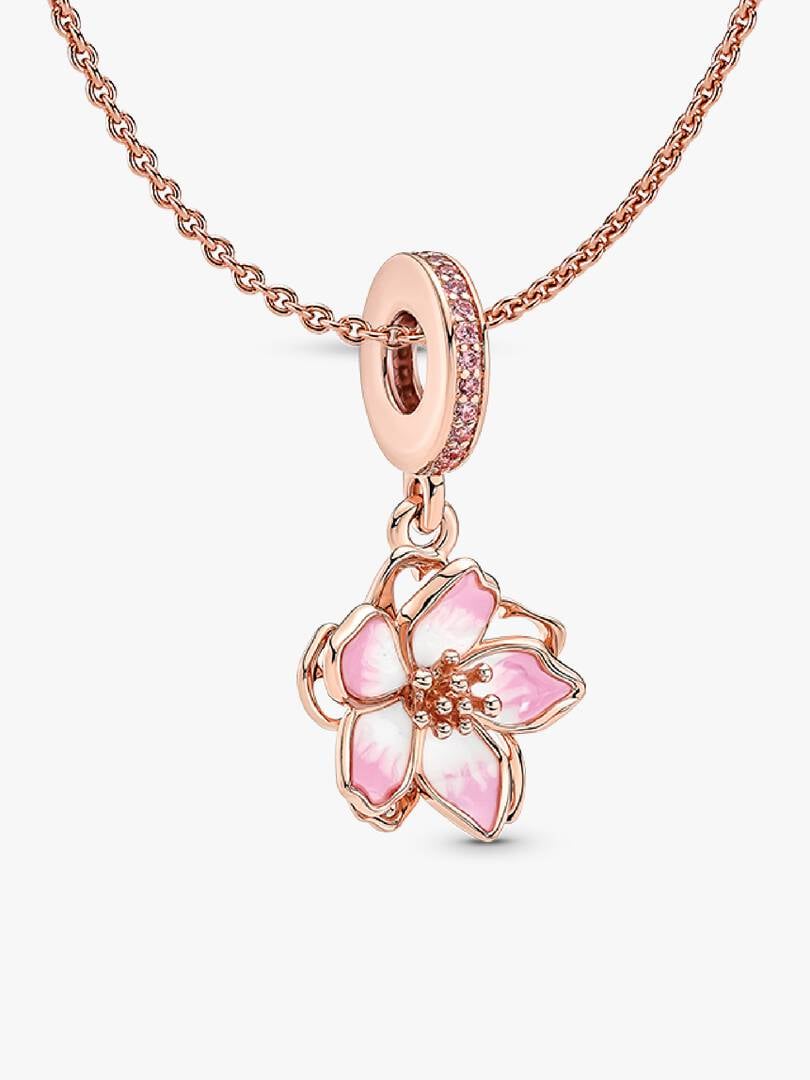 A celebration of ‘Sakura’, the Cherry Blossom Dangle Charm captures the beauty of spring and represents Japan’s annual Cherry Blossom season. Crafted in spring-like 14k rose gold-plating with sea pink and white enamel, t
