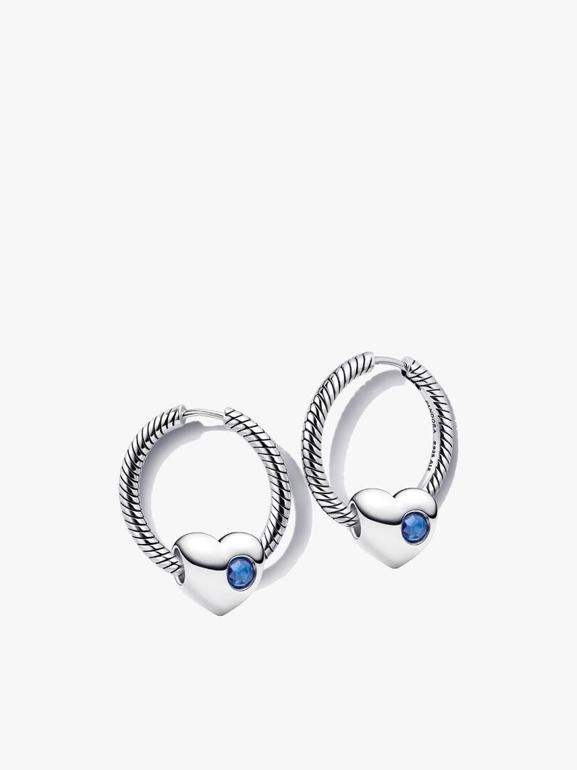 This set includes sterling silver hoop earrings featuring our signature snake chain pattern and an engravable heart charm with a flush-set blue man-made crystal for September. Add a heartfelt message and make it yours.