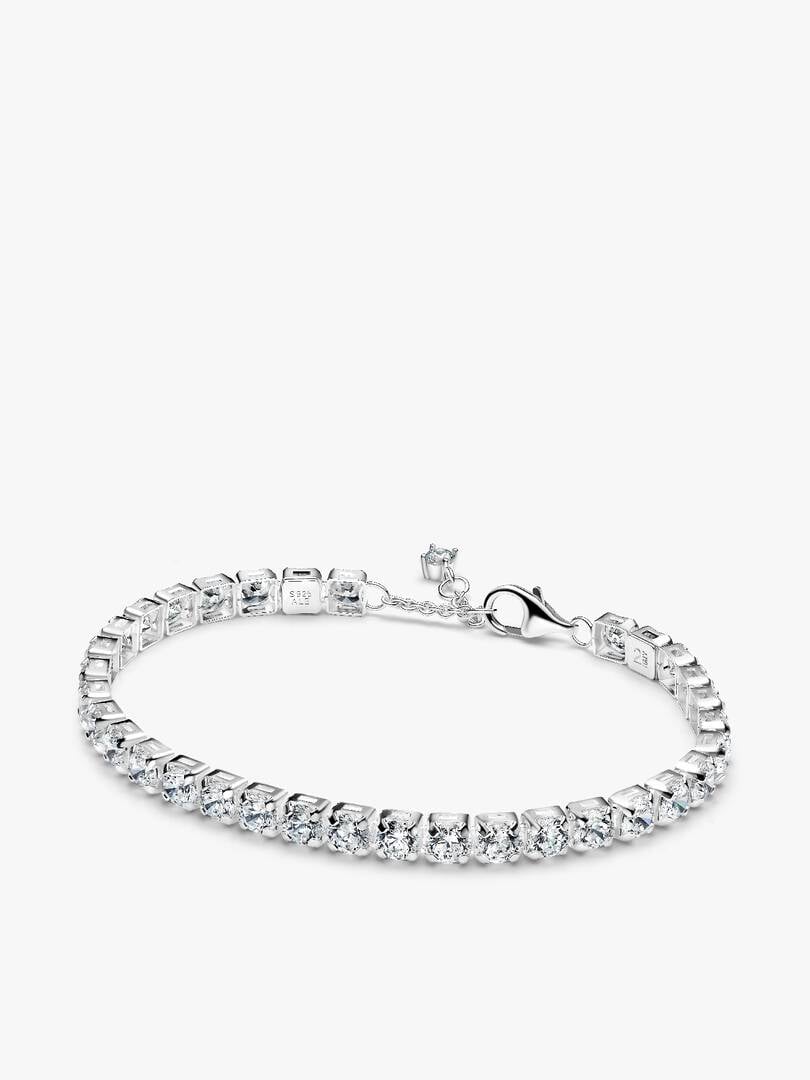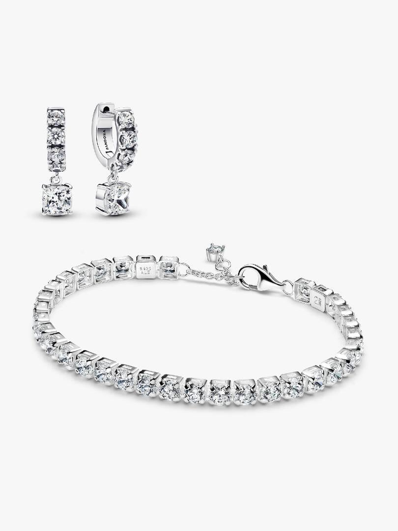 Make a statement with the Bold Sparkling Tennis Bracelet and Earring Set. This striking set features a stunning tennis bracelet and matching earrings, each crafted in sterling silver with hand-set stones for a luxurious