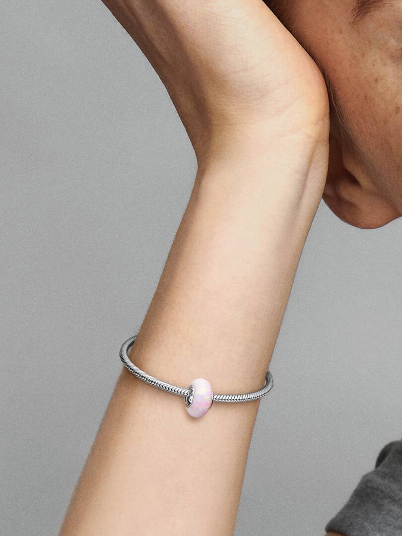 Add a pop of pink to your jewelry collection with the Opalescent Pink Charm. If pink’s your thing, you’ll love this round charm featuring a lab-created opal with differently colored specs and streaks of glitter that catc