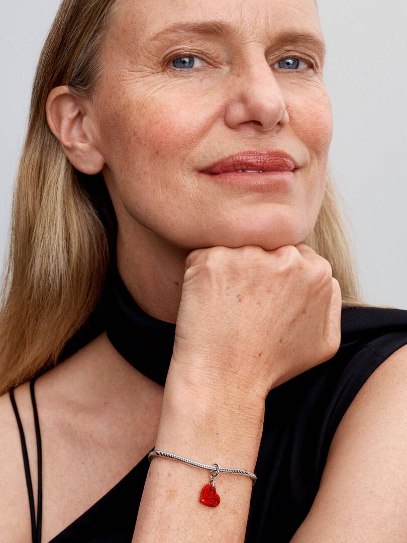 Add a bold pop of color to your look. Featuring a heart-shaped red lab-created opal that shimmers with a mesmerizing spectrum of colours, this hand-finished charm is crafted from sterling silver. The heart dangles at an