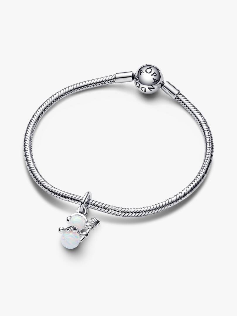lab-created opals, this sterling silver dangle charm features playful details like a pavé scarf, a grooved broom and ear-warmers with microbead details. Gift it to the one you’d build a snowman with, or wear it to bring holiday cheer to any look.