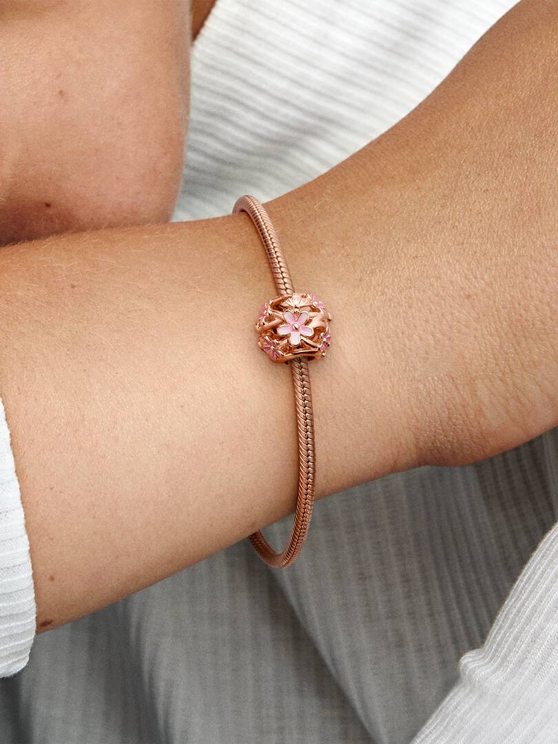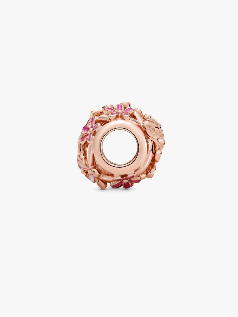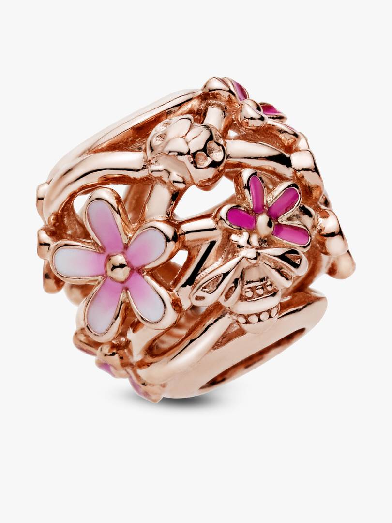 Bring the joy of springtime to your look with this Openwork Pink Daisy Flower Charm. Hand-finished in 14k rose gold plating, this detailed charm features the best of the season including pink daisy flowers, a ladybird an