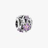 Brighten up your look with the Openwork Purple Daisy Charm. Hand-finished in sterling silver, this intricate openwork flower charm features delicate daisies covered in hand-applied lavender and pink enamel, as well as po