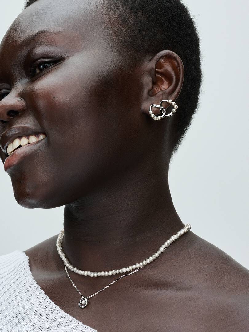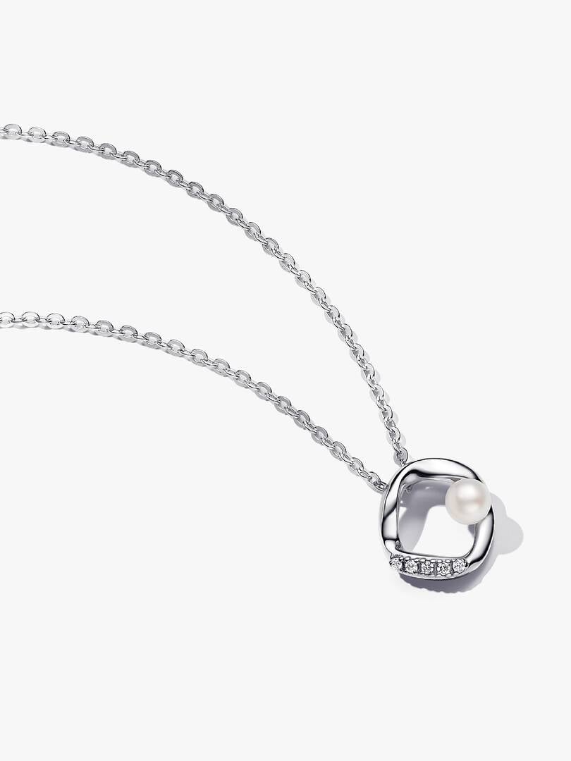 Classic gets a refresh with the Organically Shaped Pavé Circle & Treated Freshwater Cultured Pearl Collier Necklace. This necklace features an organically-shaped sterling silver circle pendant with one treated freshwater