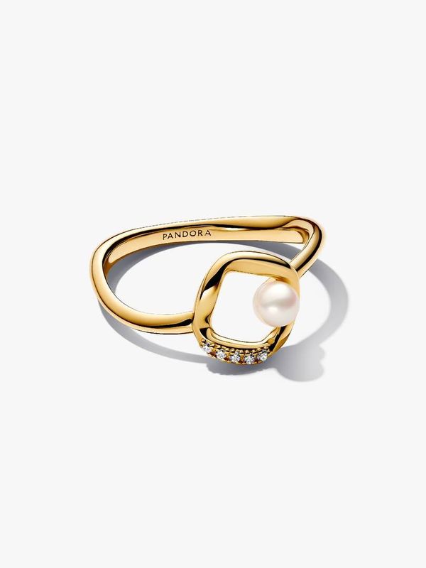 Discover a symbol of freedom and self-expression with this organically shaped circle ring, paved with clear cubic zirconia and adorned with a treated freshwater cultured pearl, perfect for those who embody creativity and