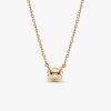 es, creating a modern aesthetic and opening the stone to the light for amplified sparkle. The 14k gold pendant is fixed to a matching diamond-cut cable chain, adjustable to two lengths. This lab-grown diamond necklace is a universally wearable piece that will elevate your looks day and night for years to come. Each brand Lab-grown diamond is treated with a post-growth color enhancement called annealing.