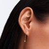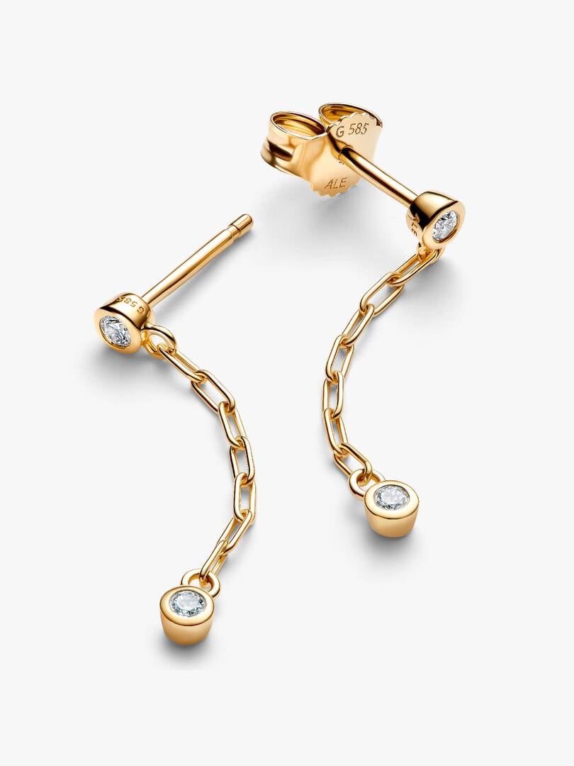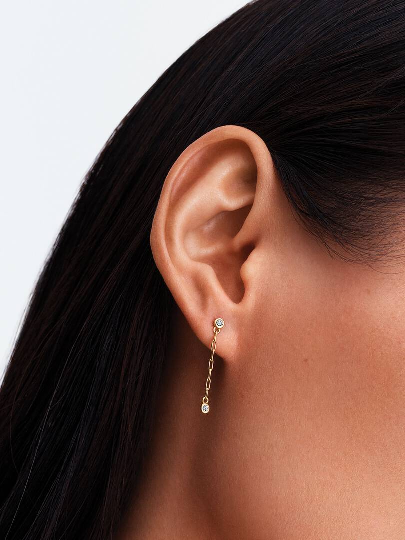 Meet your new “I’m never taking them off” earrings. Two 14k solid gold paperclip chains hang between two bezel-set lab-grown diamonds with 0.12ct TW – one at the stud and one at the end of the drop. Surprise someone spec