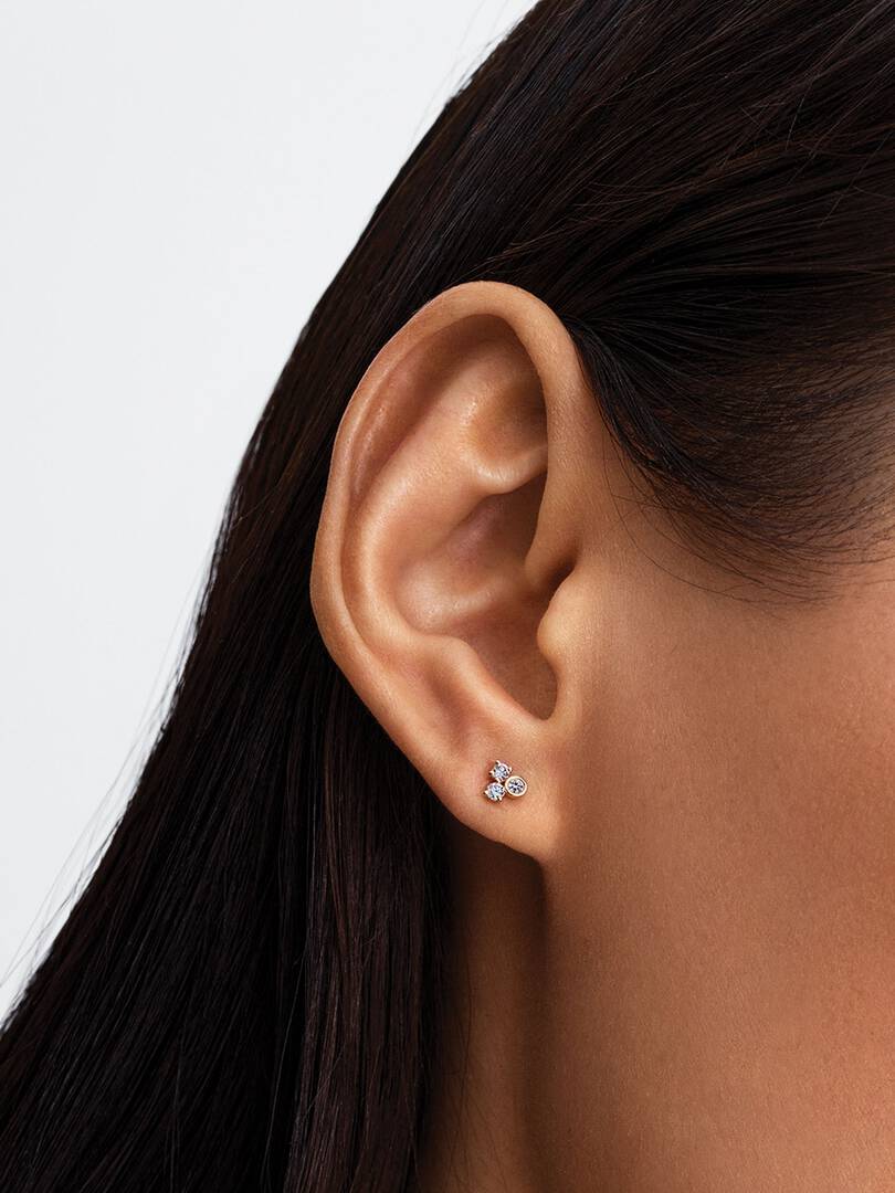 Crafted from 14k gold, these earrings feature a cluster of three lab-grown diamonds with a combined total carat weight of 0.19ct. Two diamonds are prong-set while one is bezel-set, creating a harmonious interplay of sett