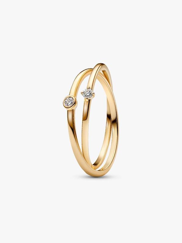 Crafted from 14k gold, this radiant ring features a unique crossover design, with two moveable bands that are forever connected. Two 0.07ct TW lab-grown diamonds scatter at the center, one prong-set and the other bezel-s