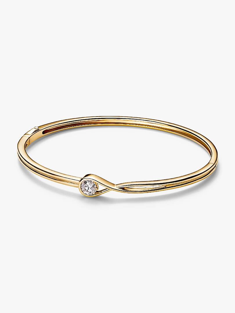 Celebrate your power to shine with this brand Infinite 14k Gold Lab-Grown Diamond Bangle, hand-set with a radiant 0.50 carat lab-grown diamond. The round, excellent cut lab-grown diamond floats inside our unique infini
