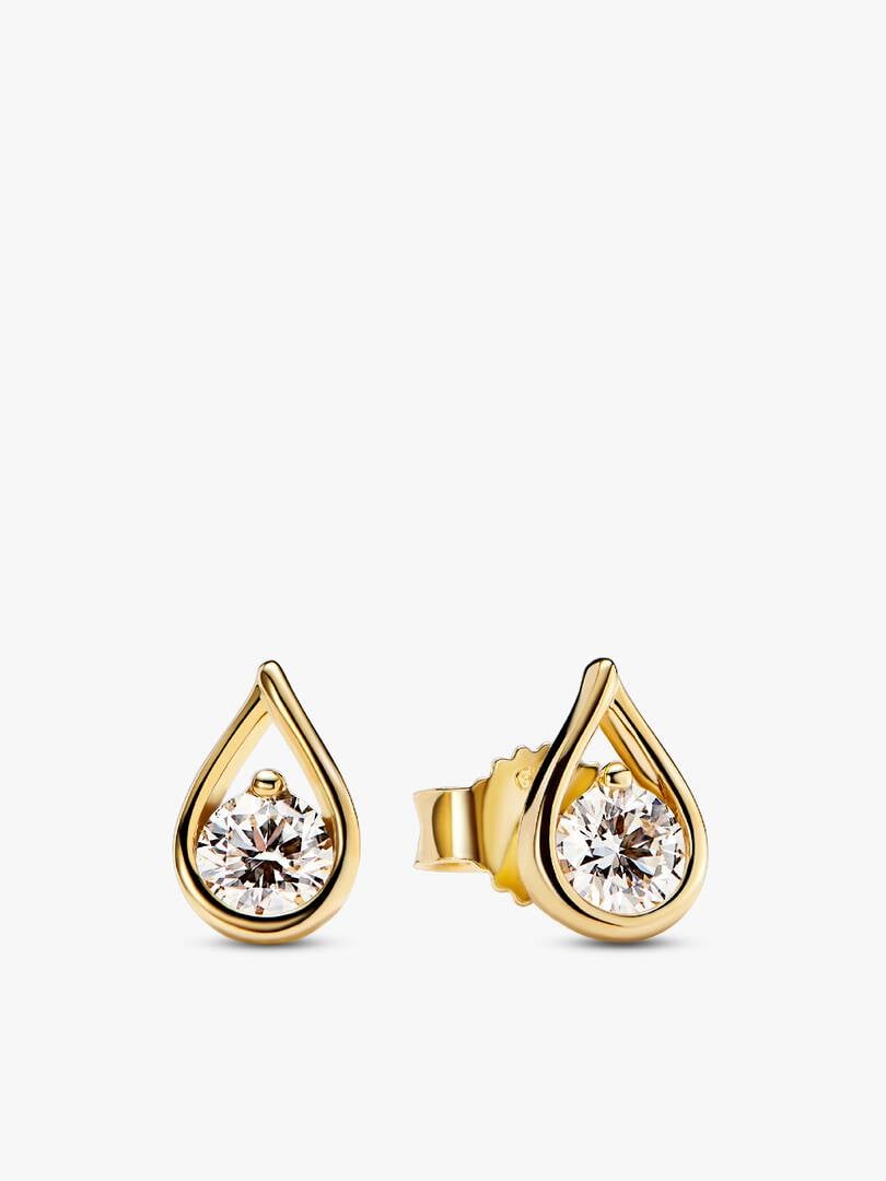 A pair of solid 14k yellow gold stud earrings each hand set with a 0.25 carat lab-grown diamond. A sparkling celebration of the infinite potential within all of us, these earrings feature a radiant round brilliant excell
