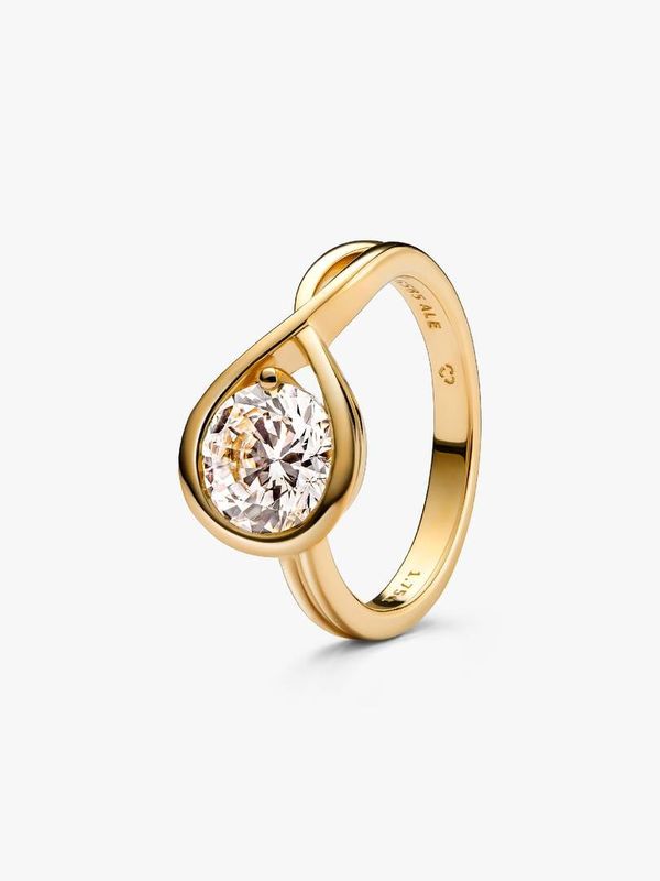 A solid 14k gold ring hand-set with a 1.75 carat lab-grown diamond. A beautiful statement of empowerment, or an eloquent declaration of love. A modern infinity setting flows seamlessly around the round brilliant excellen
