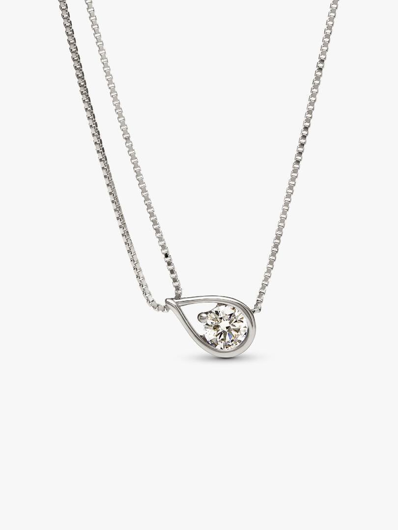 necklace. Our fluid infinity design symbolizes infinite joy, optimism and strength. The round brilliant excellent cut lab-grown diamond is suspended from a refined box chain in 14k white gold, which doubles up on one side to add a modern twist to the design. The double chain leads to a sliding ball closure, allowing you to adjust the length of the necklace so it shines on any neckline. brand Infinite lab-grown diamonds at and above 0.50 carat are certified by IGI. Each brand Lab-grown diamond is treated with a post-growth color enhancement called annealing.