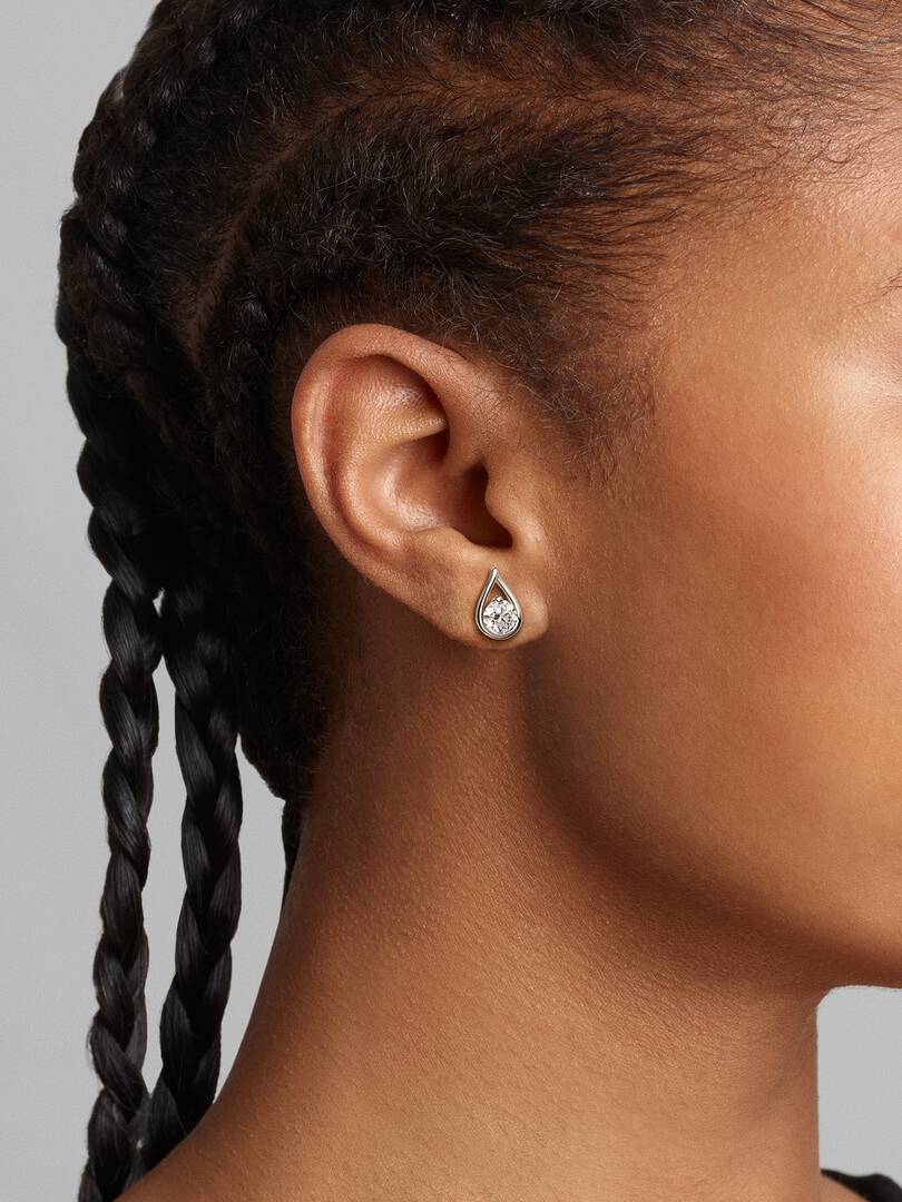 A pair of solid 14k white gold stud earrings each hand set with a 0.50 carat lab-grown diamond. A sparkling celebration of the infinite potential within all of us, these earrings feature a radiant round brilliant excelle