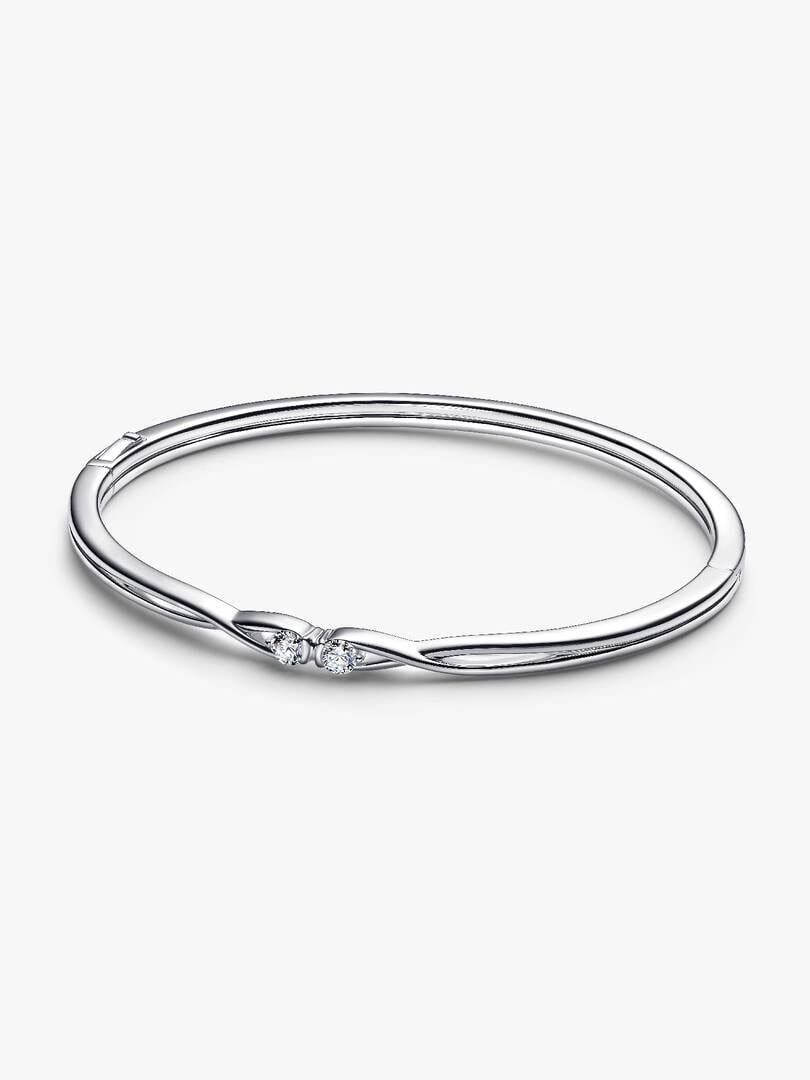 Infinite design, infinite styling possibilities. Our brand Infinite bangle is crafted in sterling silver, with two 0.15ct lab-grown diamonds that meet its centre. Set in our unique interpretation of an infinity symbol,