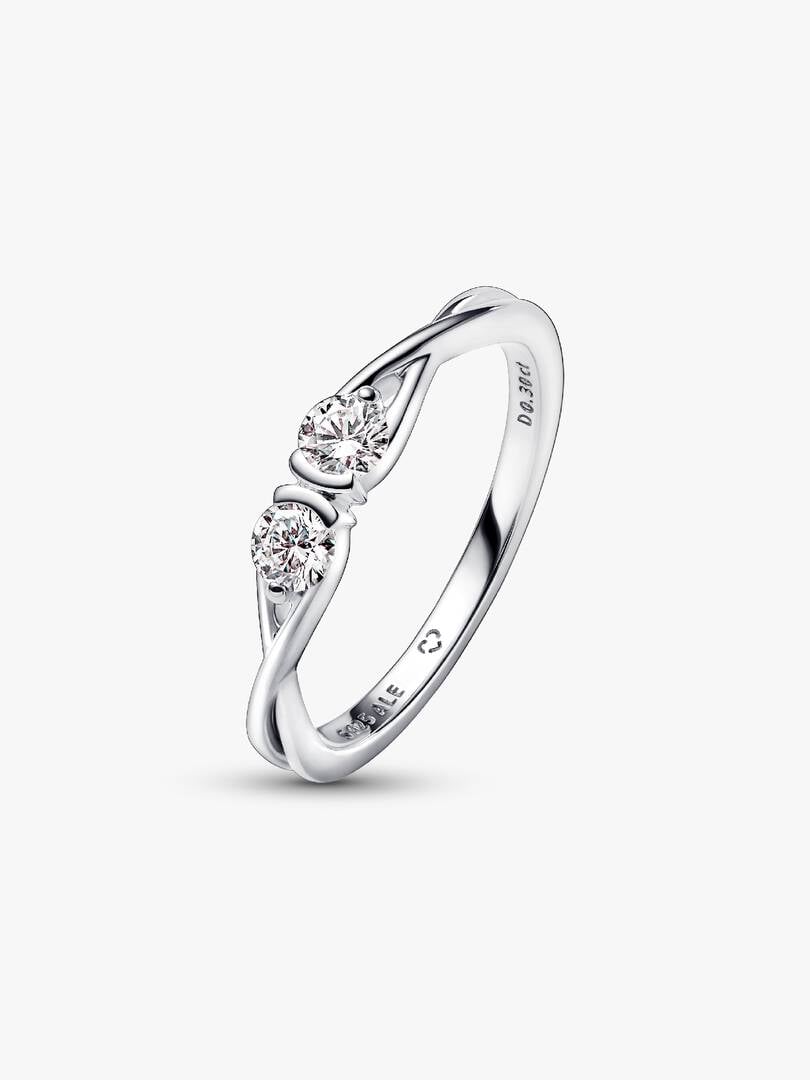 ds, totaling 0.30 carat, in a modern infinity shape. Hand-set in sterling silver, each lab-grown diamond rests inside an infinity loop, appearing to float weightlessly with the support of a prong-and-partial-bezel setting. Inspired by infinite connections, the unique infinity design flows seamlessly around the stones and represents your eternal bonds. Each brand Lab-grown diamond is treated with a post-growth color enhancement called annealing.
