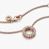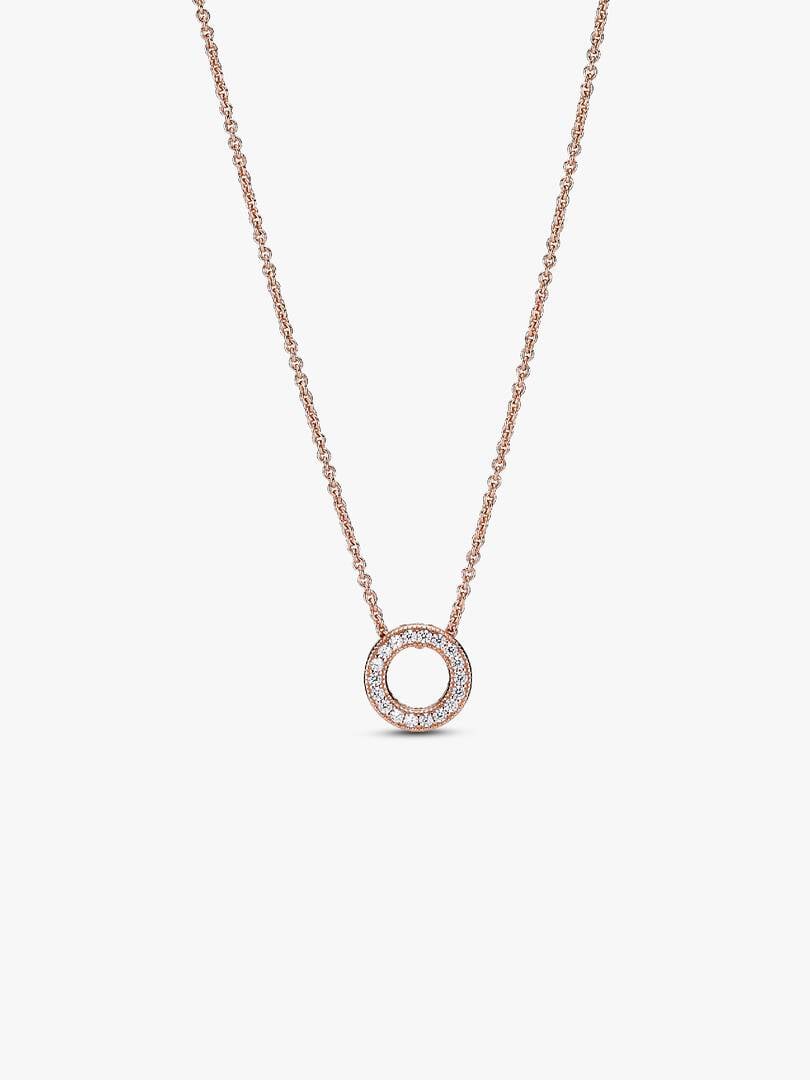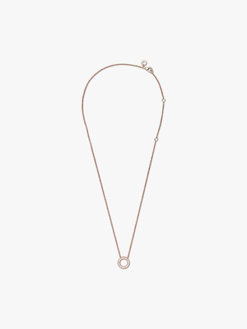 Celebrate the brand Signature range with the brand Logo Pavé Circle Collier Necklace. This 14k rose gold-plated reversible piece with an open centre is highly detailed and hand-finished. On one side of the circle, th