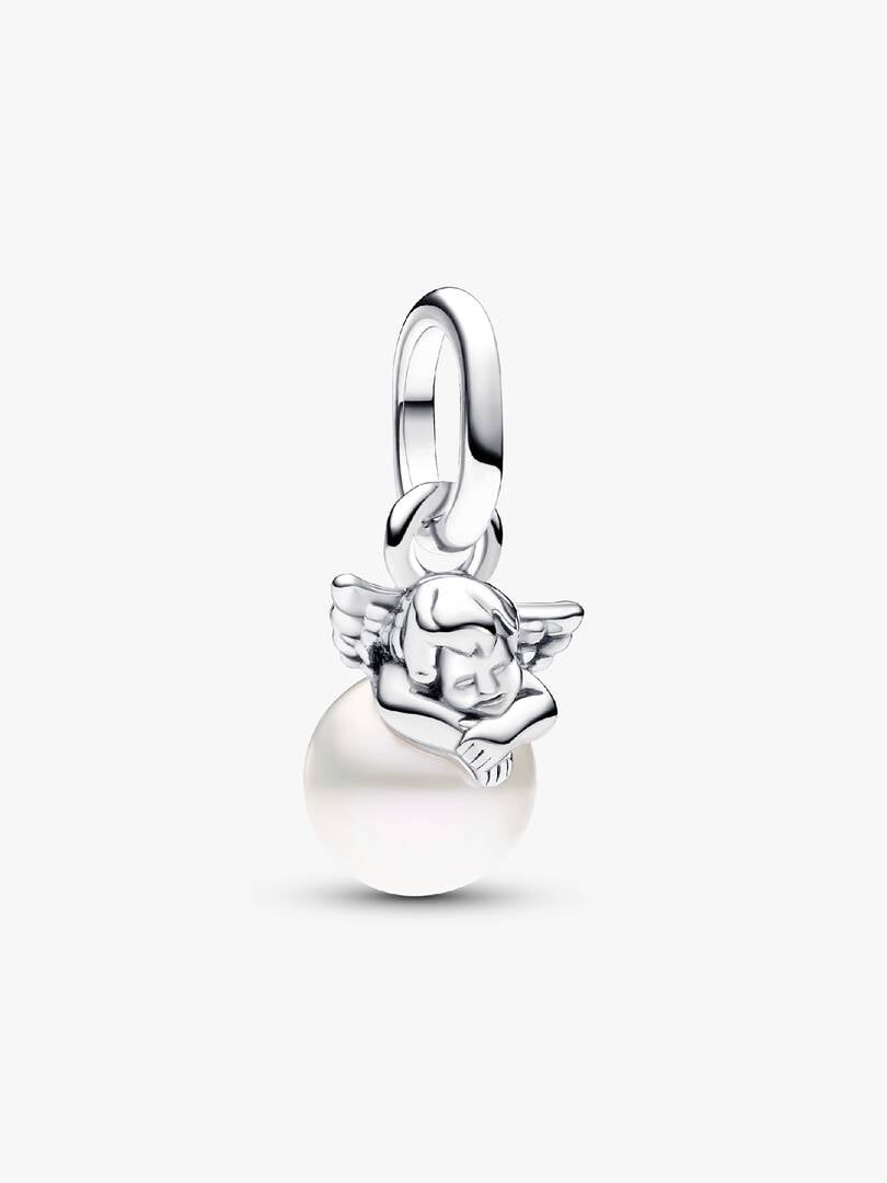The brand ME Cupid Mini Dangle Charm is a new take on vintage romance and nostalgia. A little sterling silver cupid rests on a white treated freshwater cultured pearl with a sleepy expression, as if dreaming sweetly on