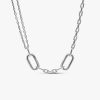 Our sterling silver brand ME Double Link Chain Necklace has endless styling possibilities, featuring two openable links – designed with grooved lines to set them apart – five links between each openable link and a smal