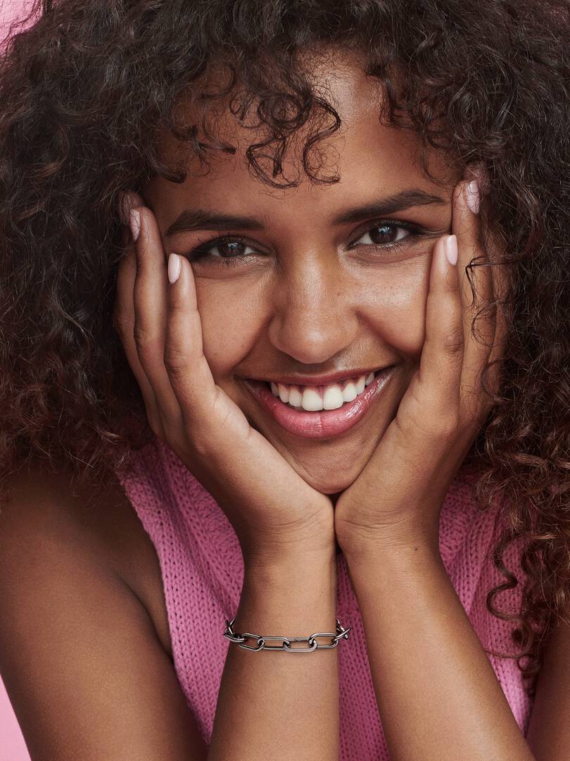 t, styling links and a carabiner clasp closure. First customise your link chain: one set of interlocking styling links can be swapped out between each link for four small interlocking links, a styling double link or one styling link – keep the original length or adjust it to suit you. Once you’ve curated your link chains, remix your look with up to two meaningful medallion charms or up to eight mini dangle charms on each openable link, or with one medallion charm per styling link to show the world what you’re about. Please note this item is only compatible with brand ME jewelry and will not fit our other collections.