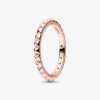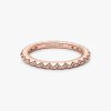 It’s rosé all day with the brand ME Pyramids Ring. This 14k rose gold-plated ring is punctuated by pyramid studs with clear cubic zirconia stones set between them. A grooved line along the edges of the ring adds a subt