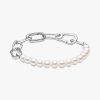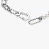 links – designed with grooved surfaces to set them apart – that link to a row of ethereal treated freshwater cultured pearls and a carabiner clasp closure. Customize your link chain first: one set of interlocking styling links can be swapped out for one styling double link or one styling link – keep the original length or adjust it to suit you. Once you’ve curated your link chain, style up to two medallion charms on your openable links, or up to eight mini dangle charms to show the world who you are. NOTE: the relevant treatments for treated freshwater cultured pearls are bleaching or dyeing and luster enhancement. Discover how to mix and re-mix your brand ME look here.