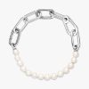 Pearls, reimagined: this sterling silver brand ME Treated Freshwater Cultured Pearl Bracelet takes the iconic pearl and turns it into a design with endless personalization potential. The bracelet features two openable