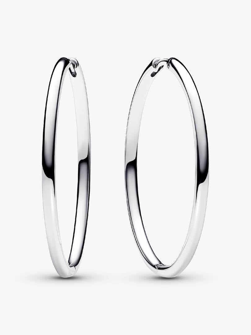 Personalize a style essential with the brand Moments 40 mm Charm Hoop Earrings. Crafted of sterling silver, these earrings feature a rounded profile and our iconic brand logo on the hoops’ interior. Designed to be pe