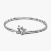 Our brand Moments Asymmetric Star T-bar Snake Chain Bracelet puts starry magic at the center of your styling. This celestial-inspired design features an asymmetric star T-bar clasp in polished sterling silver, carefull