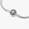 Bring timeless charm to your look with the brand Moments Halo Snake Chain Bracelet. Hand-finished in sterling silver, the bracelet’s clasp features a large sparkling clear cubic zirconia center stone surrounded by a do